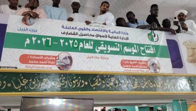 القضارف :سعدية الصديق إفتتح والي ولاية القضارف المكلّف، الفريق الركن محمد أحمد حسن، موسم التسويق لمحصول السمسم للعام 2025–2026 بأسواق…