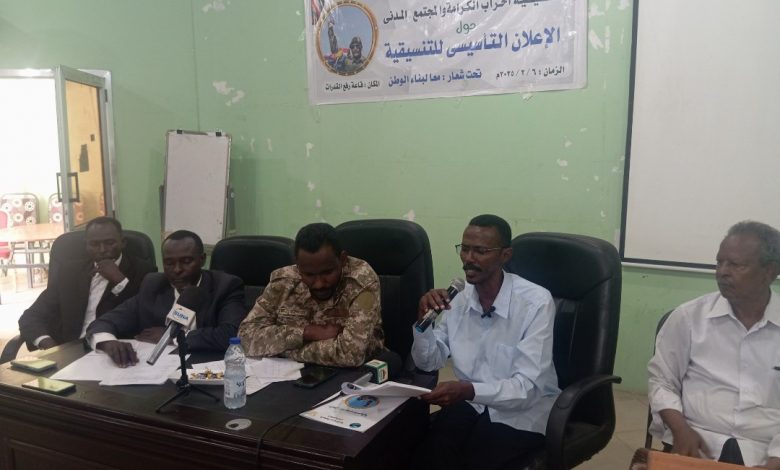 تنسيقية أحزاب الكرامة والمجتمع المدني: تعقد مؤتمرا صحفيا بمنتدي وكالة سونا بكسلا ..وتطرع برنامجها السياسي