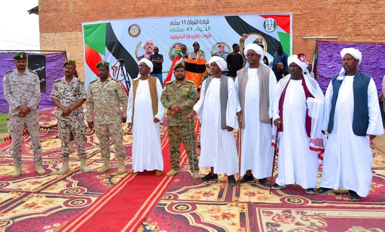 أكد قائد الأورطة الشرقية الجنرال الأمين داؤود محمود الي ان الشعب السودني يقف ويساند القوات المسلحة السودانية في معركة الكرامة وقال العيد 71 للقوات المسلحة عيد لكل الشعب السوداني والبلاد قوية برجالها وأهلها وأشار انهم عازمون بأن الحق ينتصر والجيش منتصر والسودان بلد واحد موحد وقال أهدي العيد والحفل لأهل شرق السودان والسودان عامة محييا القائد البرهان بعيد القوات المسلحة وأرسل تهاني لقيادة الفرقة (11)مشاة واللواء 41 مشاة وكل المواطنين بهذه المناسبة العظيمة والكبيرة مشيرا بأن الانتصار وحسم المعركة اقترب وقال بأسم قوات الأورطة الشرقية وبأسم الجبهة الشعبية المتحدة للتحرير والعدالة نهنئ كل المواطنين الشرفاء بهذا الأحتفال مشيرا بأن المؤامرات التي تحاك ضد الوطن سواء كانت دولية أواقليمية نقول لهم هيهات بأن الشعب السوداني جسور وقوي لاينكسر والجميع خلف الفريق أول عبد الفتاح البرهان وقيادة الدولة مشيرا بأن كل الشعب السوداني يقف صفا واحد خلف القيادة .فيما قال القائد جعفر محمد الحسن ان قوات الأورطة الشرقية تقف سندا وعضدا مع القوات المسلحة وهذا الإحتفال بالعيد (71) يعتبر مناسبة عظيمة لكل الشعب السوداني مشيرا بأن الجيش تخوض معركة الكرامة والجميع خلفه وقال بأن الوطن هو الهم الأكبر مؤكدا الي أقتراب نهاية التمرد وحسم المعركة بفضل عزيمة الشعب السوداني وبفضل القوات المسلحة والقوات المساندة في الصفوف الأمامية بأن البلاد ستكون خالية من الجنجويد والمتمردين