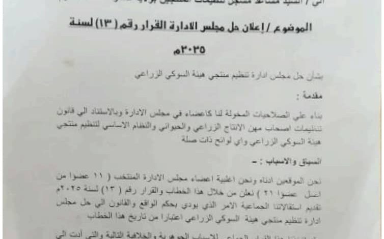 استقالة جماعية تهزّ مجلس إدارة هيئة السوكي الزراعي