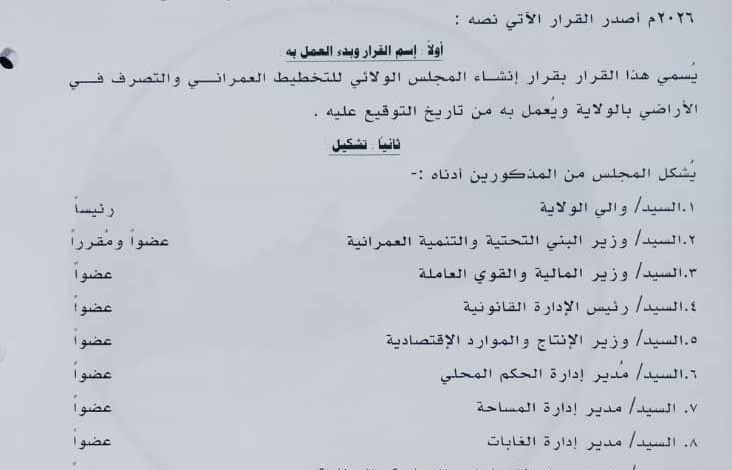 والي ولاية كسلا يصدر قرارا.. بإنشاء المجلس الولائي للتخطيط العمراني والتصرف في الأراضي بالولاية