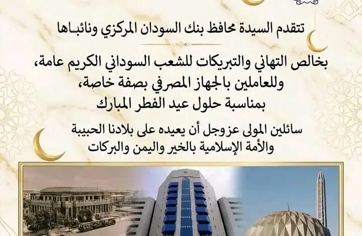 بنك السودان المركزي يتقدم بالتهنئة الحارة للشعب السوداني بمناسبة قدوم عيد الفطر المبارك