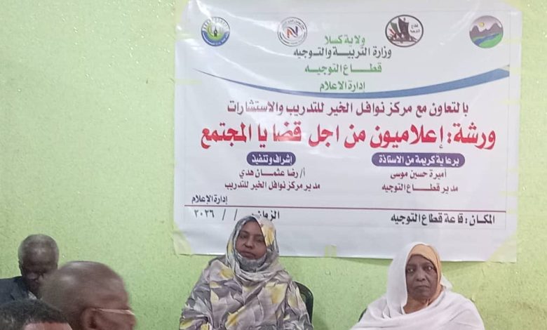 قطاع التوجيه بوزارة التربية بولاية كسلا. بالتعاون مع مركز نوافل الخير.. ينظما ورشة تدريبية للإعلاميين بكسلا ….